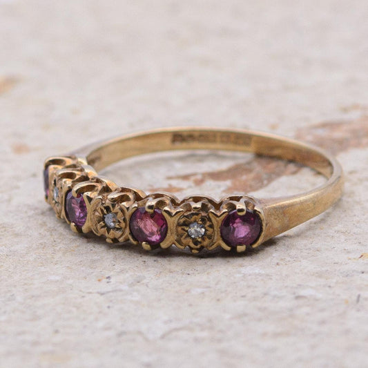 Vintage 9ct Ruby and Diamond Ring | UK Size L | US Size 5.75