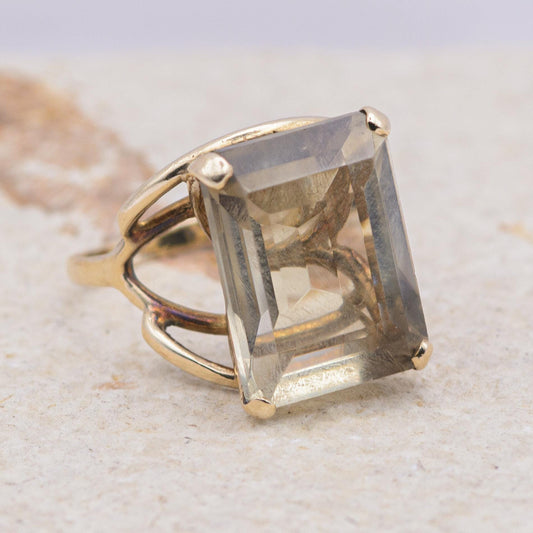 Vintage Chunky Smoky Quartz Cocktail Ring | 9ct | UK Size O | US Size 7 |