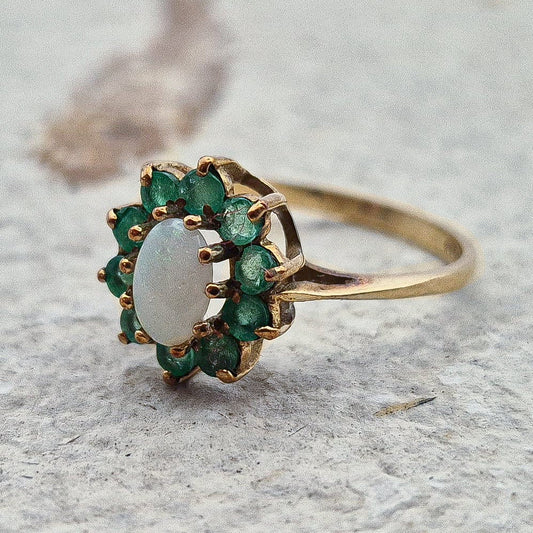 Vintage Emerald and Opal Cluster Ring |UK Size K 1/2 | US Size 5.5 | 9ct