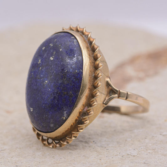 Vintage Lapis Lazuli Chunky Ring | 9ct Gold | UK Size N 1/2 | US Size 7