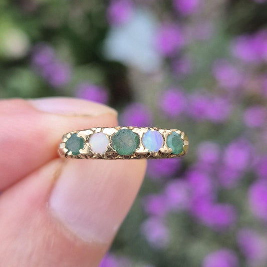 Vintage Emerald and Opal 5-Stone Ring | UK Size L 1/2 | US Size 6 | 9ct
