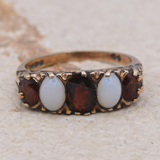 Vintage 9ct Garnet and Opal 5-Stone Ring | UK Size O 1/2 | US Size 7.5