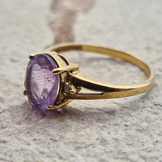 Vintage 9ct Amethyst Ring, Gold Crystal Ring, Amethyst Ring, 9ct Gold Ring, 9ct Gold Vintage Ring, Gold Ring for Women, Vintage Jewelry