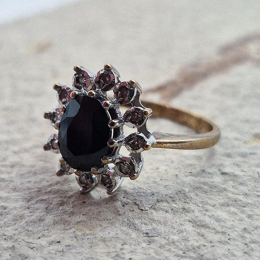 Vintage 9ct Diamond and Sapphire Cluster Ring | UK Size L | US Size 5.75