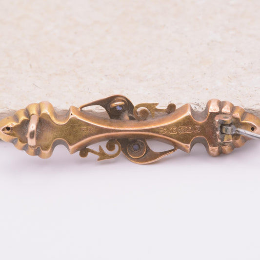 Edwardian 15ct Gold Bar Brooch with Diamond and Sapphires