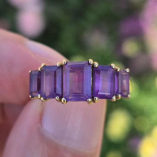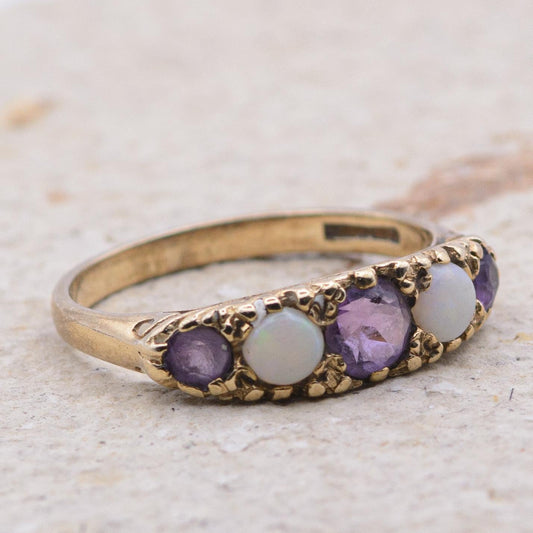 Vintage Amethyst and Opal 5-Stone Ring | UK Size M | US Size 6.25 | 9 Carat Gold