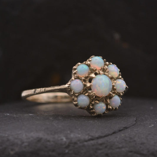 Vintage Opal Cluster Ring | UK Size M 1/2 | US Size 6.5 | 9 carat gold