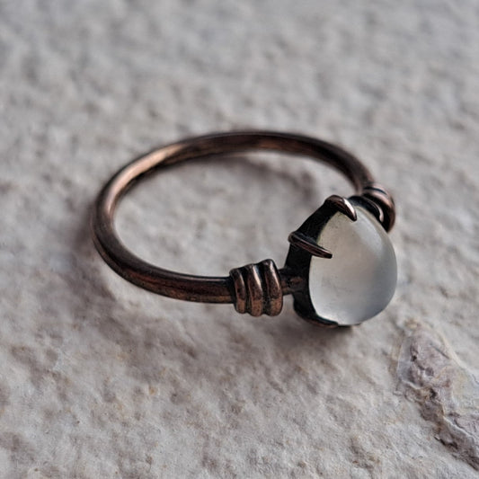 Vintage Rose Metal Moonstone Ring | Size I 1/2