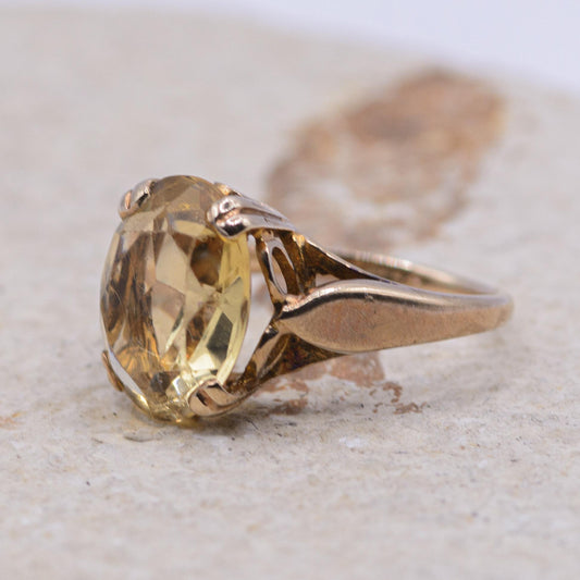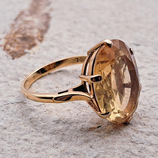 Vintage Citrine Cocktail Ring | UK Size M | US Size 6.25 | 9 Carat Gold