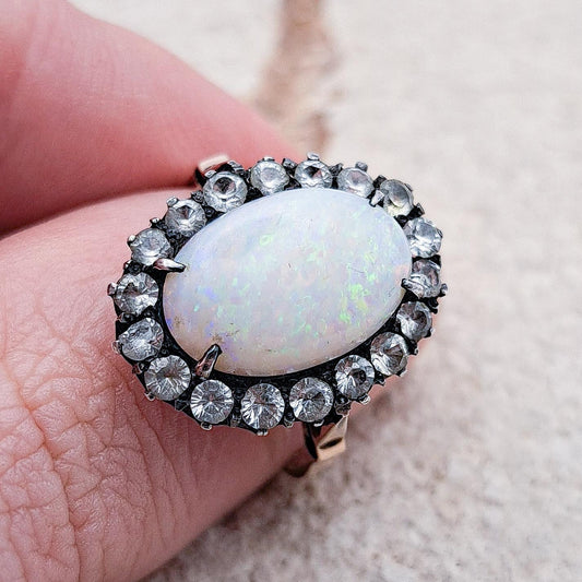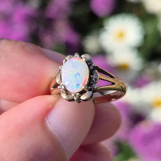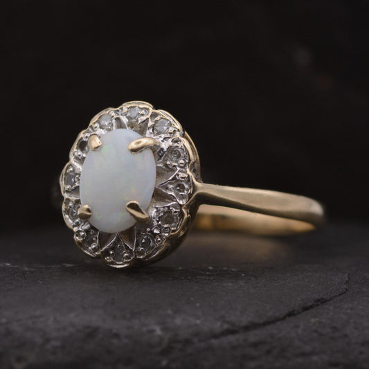 Vintage Opal and Diamond Cluster Ring | 9ct | UK Size O | US Size 7.25