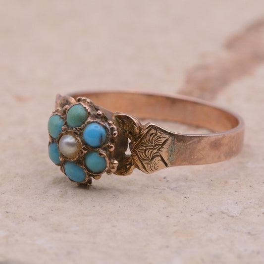 Victorian Turquoise and Pearl Ring | UK Size N 1/2 | US Size 7