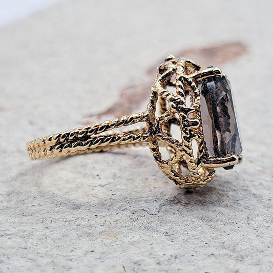 Vintage 9ct Gold Smoky Quartz Cocktail Ring | UK Size J / US 5 |