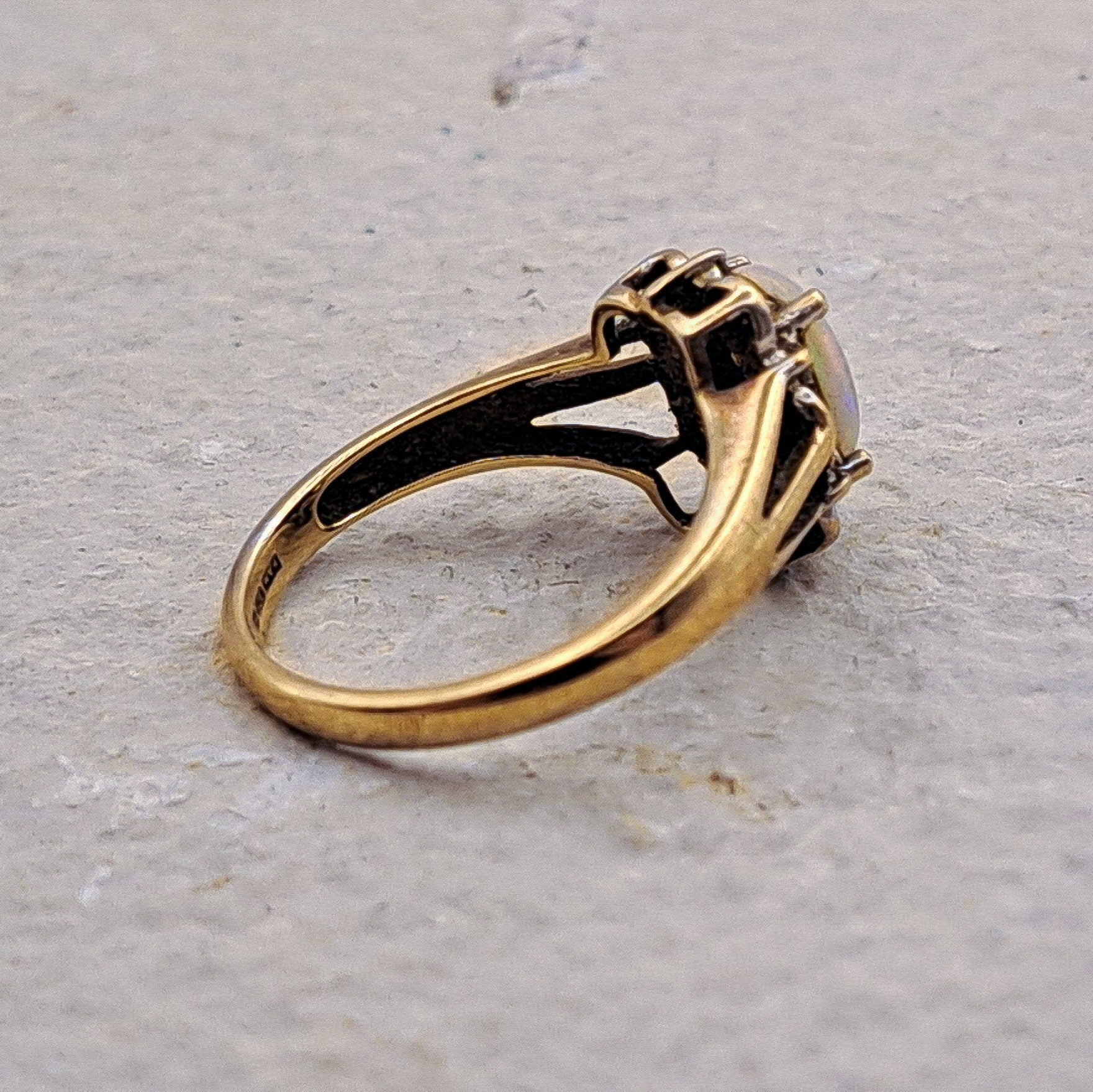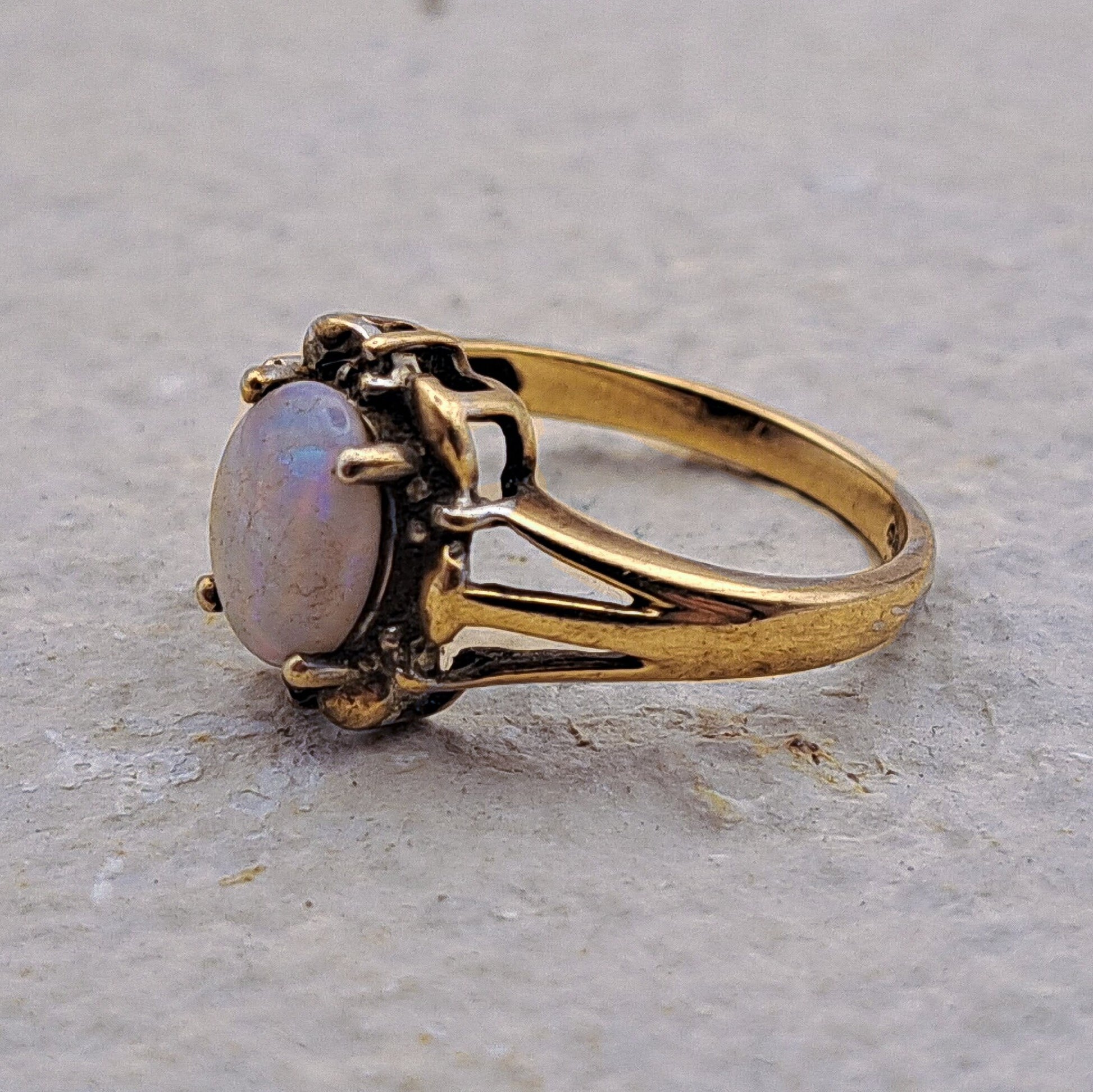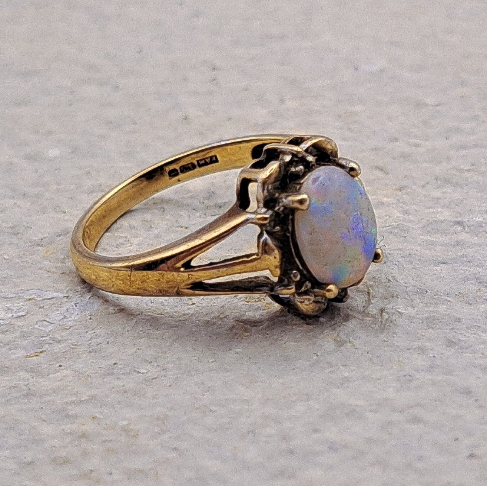 9ct Gold Vintage Opal and Diamond Ring | Size J 1/2