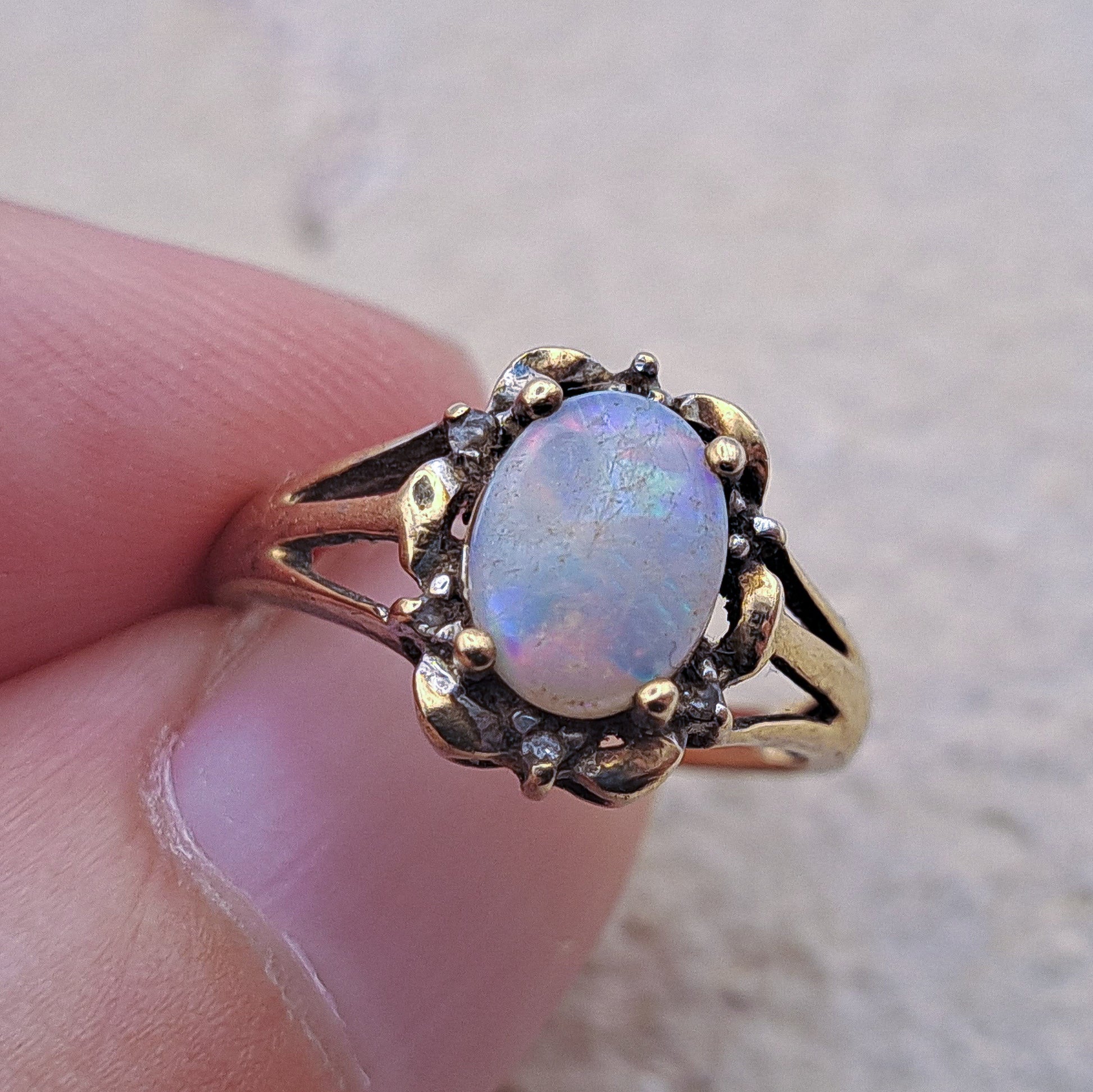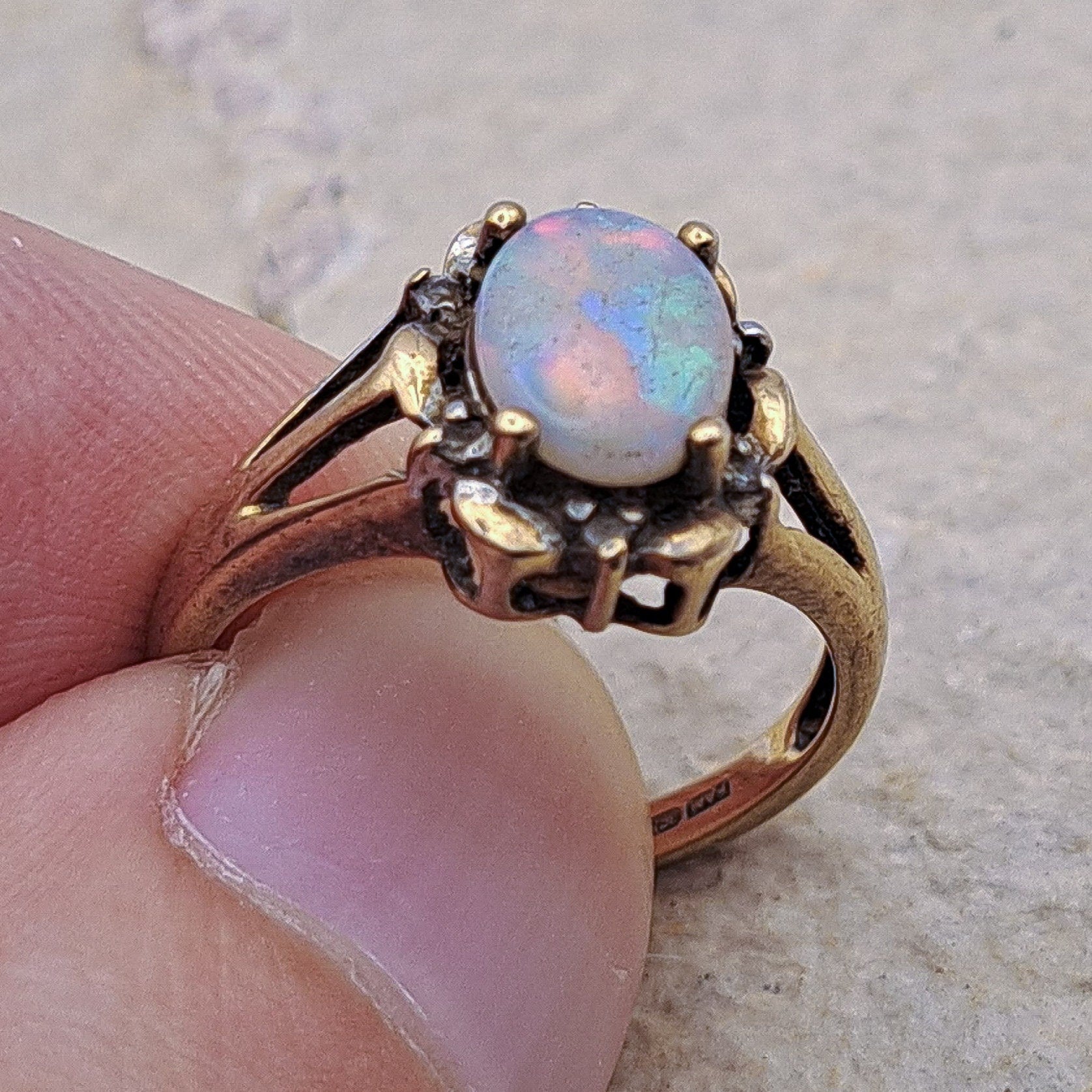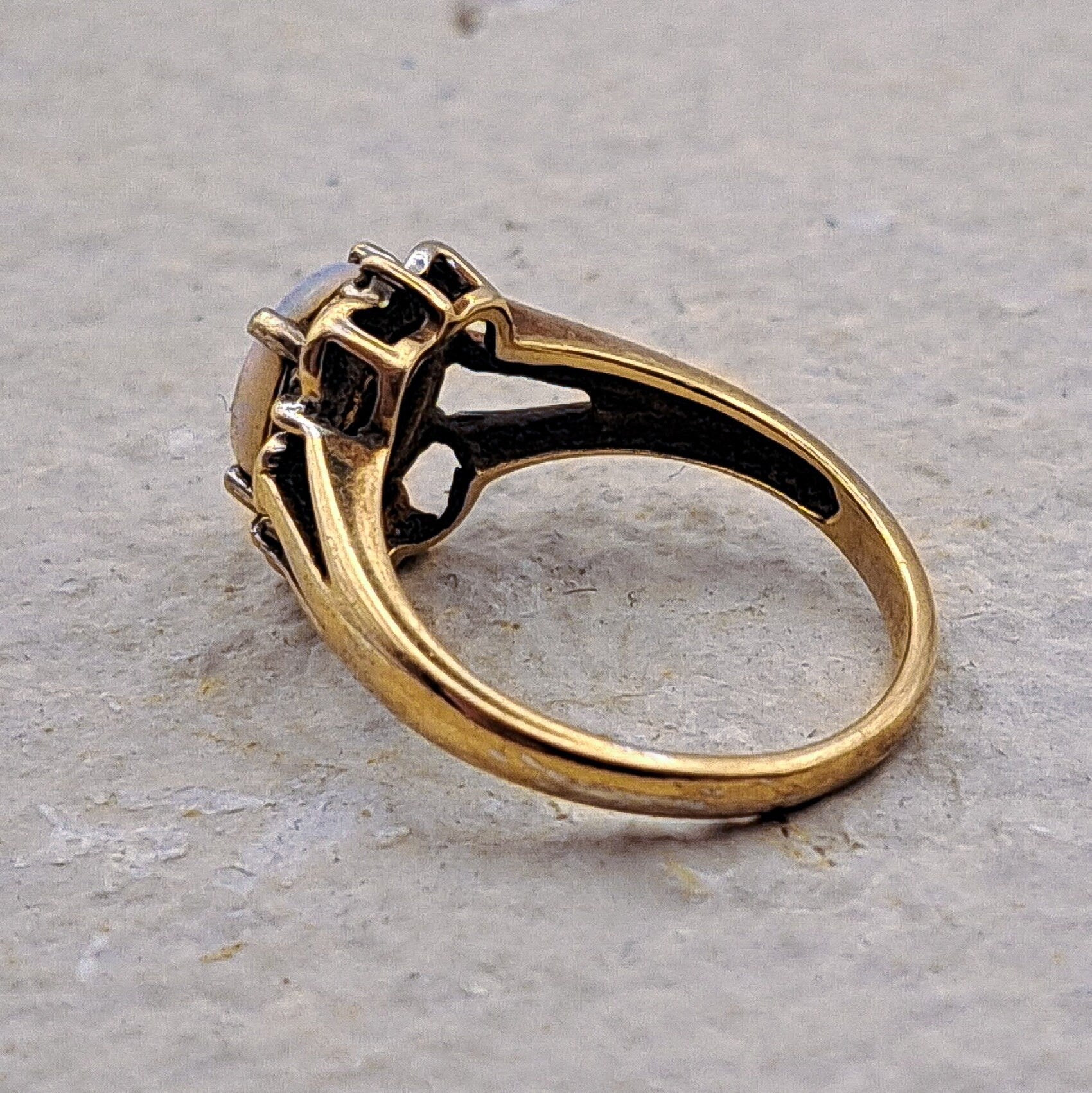 9ct Gold Vintage Opal and Diamond Ring | Size J 1/2