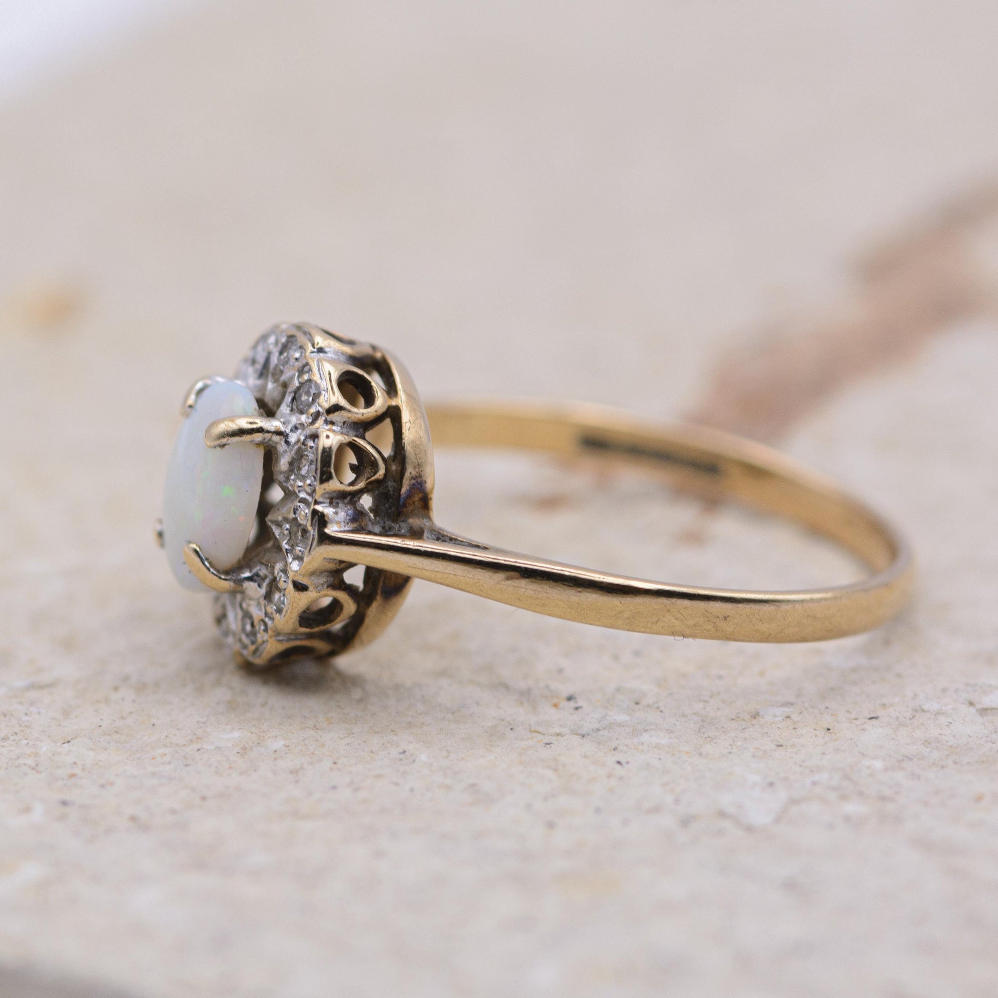 Vintage Opal and Diamond Cluster Ring | 9ct | UK Size O | US Size 7.25